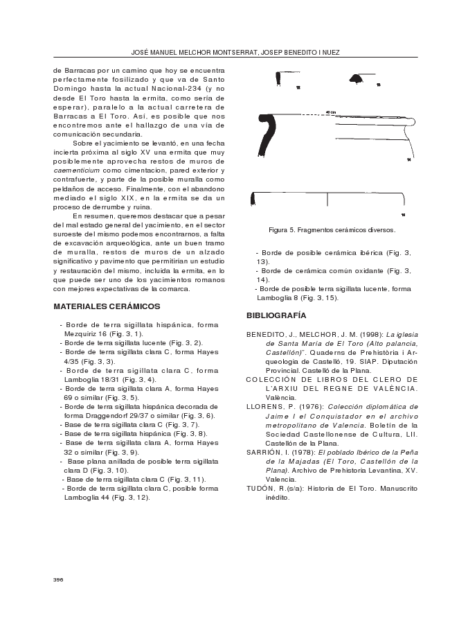 La ermita bajomedieval de Santo Domingo (El Toro, El Alto Palancia) Planimetria y estudio arqueológico